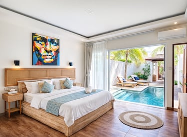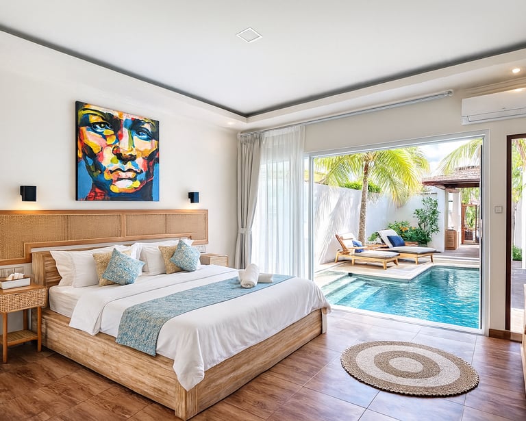 Cozy cabanas, private pool villas, and curated long-stay homes designed for calm, comfort, and island simplicity.